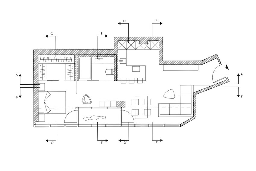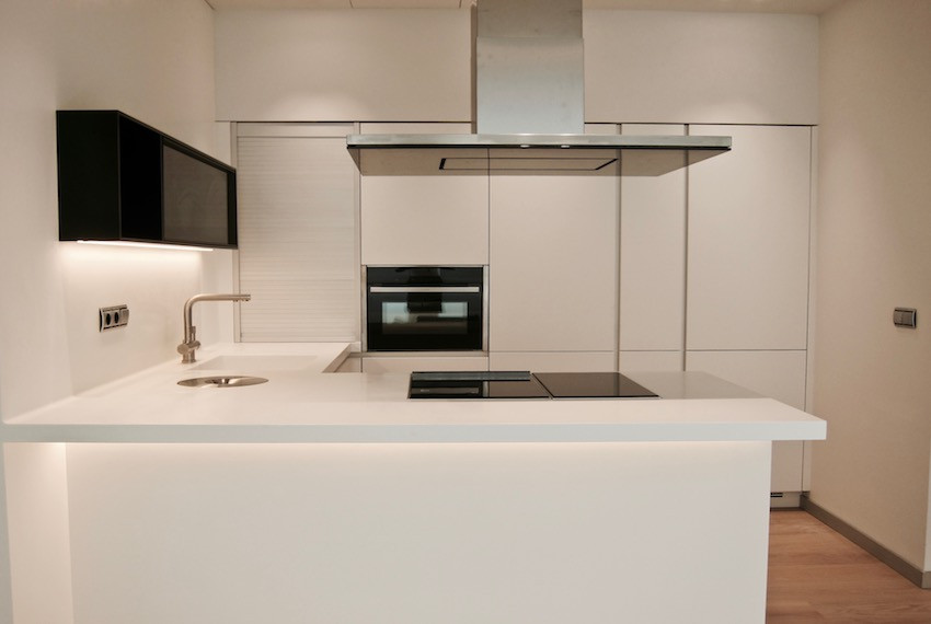 Este apartamento de 58 m2 tiene una planta rectangular muy definida, en la resolución del proyecto se han eliminado las divisiones intermedias y los espacios de uso se han abierto hacia la luz, el volúmen resultante permite una mayor fluidez y una manera mas libre de disfrutarlo. El cerramiento de fachada, realizado con muro cortina de 32 m2 de superficie, perfila los límites de la vivienda y hace posible abrir el interior hacia el exterior, con la luz como elemento protagonista.