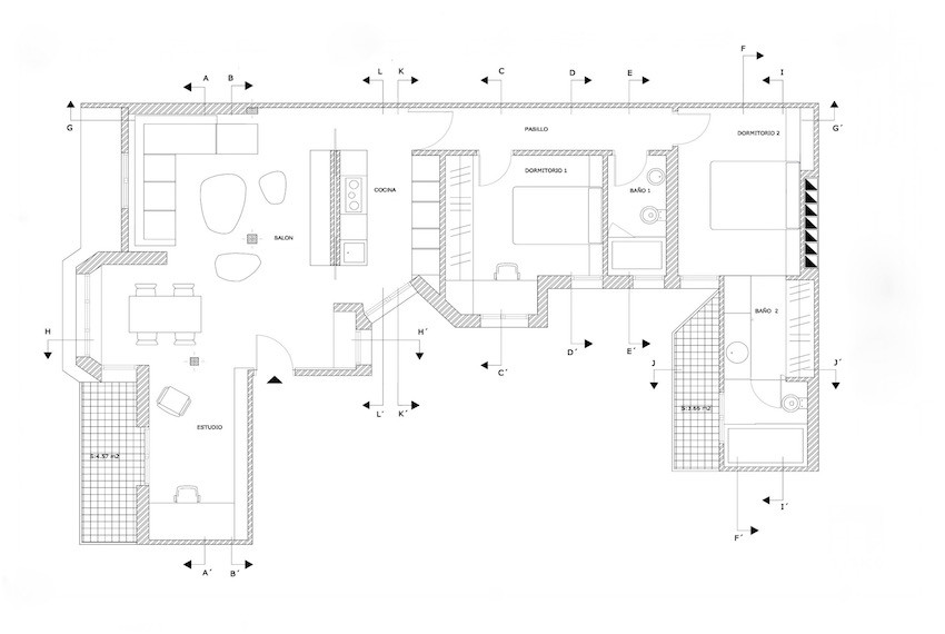 Situada en el centro de la ciudad, en esta vivienda de 97 m2 de superficie se replantea un proyecto de esencia minimalista y volúmenes muy ordenados, donde la zona de estar, comedor y el estudio comparten el mismo espacio común.